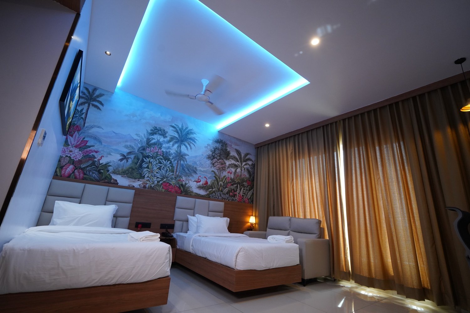 Our Himayat Standard Twin room offers a harmonious balance of shared space and individual comfort. Featuring two cozy twin beds and elegant contemporary furnishings, this room is perfectly suited for friends, colleagues, or siblings traveling together. Guests can enjoy all the modern amenities of our standard rooms, including high-speed Wi-Fi and a refreshment center, all while enjoying the dynamic scenery of the adjacent highway.